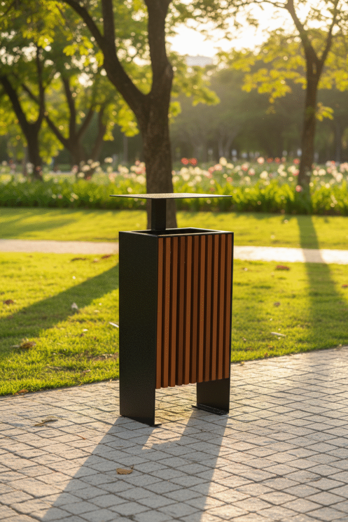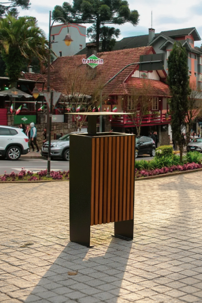 A Lixeira Urbana Slim Madeira & Aço, também conhecida como Lixeira Linea, combina design contemporâneo, leveza visual e alta durabilidade em uma peça projetada para integrar-se harmonicamente a ambientes urbanos, corporativos e paisagísticos.